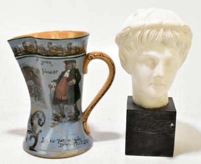 Three Day Auction of Boutique, Silver, Jewellery & Watches with Furniture & Interiors(#204) 14/07/2021 10:00 AM GMT+1 CLOSED Auction Information Advanced Search ▼ Items per page 122448 Advanced Search Sort by DefaultTime LeftLot#Lot NameNewestHighest PriceLowest PriceBidsViews Filter By Categories Toys & Games: Toys Boutique - Clothing Lighting Pictures: Prints, Etchings, Engravings & Maps Carpets & Rugs Collectors' Items Silver Asian Art: Oriental & Eastern Works of Art Jewellery: Costume Jewellery Clocks: Carriage Clocks Furniture: Oak & Vernacular Doulton Sporting Boutique - Accessories Glass Pictures: Traditional Watercolours Barometers Decorative Arts Musical Instruments & Mechanical Music Jewellery Militaria: Medals, Badges & Buttons Furniture: Arts and Crafts & 20th Century Design Pictures: Northern & 20th Century Oils Taxidermy Boutique - Handbags Metalware Pictures: Traditional Oils Clocks: Longcase Clocks Ceramics Ephemera Boutique - Jewellery Militaria: Edged Weapons Pictures: Northern & 20th Century Watercolours Furniture: Mirrors Textiles Coins Scientific Instruments Watches: Pocket Watches Clocks: Wall Clocks Furniture: Reproduction Ceramic Figures Books Boutique - Shoes/Boots Militaria Pictures: Northern & 20th Century Prints Garden and Architectural Bronze and Other Sculptures Plated Items Asian Art: Chinese Works of Art Watches: Wristwatches Clocks: Mantel clocks Furniture: Traditional Beswick Category match ANY of the aboveALL of the above Featured Exclude closed lots Price Auctioneer All auctioneersLiverpooltest Lot Number Results: Viewing items 1825-1872 of 2356. View Lot 2101 NATURAL HISTORY; a collection of specimen minerals and rocks, including malachite, azurite, gypsum, and Blue John, with a selection of agate and quartz geode slices, and various marble onyx and hardstone eggs including a small tiger's eye example (quantity). Estimate£50 - £70Winning Bid£100StatusCLOSED View details Estimate£50 - £70Winning Bid£100StatusCLOSED Lot 2102 A 19th century walnut rectangular box with applied brass detail housing a group of cigarette cards to the two division interior, 9.5 x 19.5 x 10cm, and two cut throat razors housed in wooden box with carved inscription 'Italy'. Estimate£30 - £40Winning Bid£45StatusCLOSED Condition ReportHeavy wear throughout, chips, losses, discolouration to cigarette cards etc. View details Estimate£30 - £40Winning Bid£45StatusCLOSED Lot 2103 An oak cased Graphophone, Columbia Phonograph Co, with horn and reproducer, box width 26cm. Estimate£40 - £60Winning Bid£55StatusCLOSED Condition ReportGrubby throughout with general age wear, scratches and scuffs, the mechanism currently but although this is no guarantee of working order, the metalwork on the inside is tarnished and with general knocks and scratches, the reproducer is perished on the inside, horn with general wear and with a non-original wood fitting supporting it to the mechanism inside the box. View details Estimate£40 - £60Winning Bid£55StatusCLOSED Lot 2104 A collection of six late 19th/early 20th century carved oak picture frames, the verso of three frames stating that they were designed and carved at the Macclesfield School of Carving, and one states that the oak on the frames is from Bate Hall, the largest 74 x 100cm, and inset with an engraving of Christ before Pilate, with a similar carved oak mirror (7). Estimate£40 - £60Winning Bid£100StatusCLOSED Condition ReportAll are grubby throughout and all with general wear and tarnishing consistent with being stored in a loft. View details Estimate£40 - £60Winning Bid£100StatusCLOSED Lot 2105 BANG & OLUFSEN; a pair of Beovox CX 100 speakers, a pair of BeoLink units, two associated remote controls, and a Harman Kardon speaker (5). Estimate£40 - £60Winning Bid£30StatusCLOSED Condition ReportWe do not know if these are in working order. View details Estimate£40 - £60Winning Bid£30StatusCLOSED Lot 2106 A 19th century natural and stained bone chess set, with extra white pawn, height of king, 12cm, housed in a mahogany writing slope. Estimate£50 - £100Winning Bid£130StatusCLOSED Condition ReportNumerous chips, losses, splits, old repairs, sections off and re-glued, too many to individualise. The red Queen has a noticeable chip to the lower section. Hairlines throughout etc. The slope also heavily worn. View details Estimate£50 - £100Winning Bid£130StatusCLOSED Lot 2107 A small collection of assorted advertising tins to include Mackintosh's egg and cream toffee, Lambert & Butler log cabin, etc. Estimate£20 - £40Winning Bid£50StatusCLOSED Condition ReportDenting, wear, scuffs, scratches throughout. View details Estimate£20 - £40Winning Bid£50StatusCLOSED Lot 2108 Five Medieval-style war axes, length approx 105cm, a stop/go sign and a wooden step ladder. Estimate£20 - £40Winning Bid£60StatusCLOSED View details Estimate£20 - £40Winning Bid£60StatusCLOSED Lot 2109 A group of variously sized picture/photograph frames, a group of dance and football trophies, and a stoneware blue glazed floral decorated teapot. Estimate£30 - £50StatusUnsold View details Estimate£30 - £50StatusUnsold Lot 2110 A mixed group of collectors' items including an eight day travel clock inscribed 'From W.D.H.P. March 6th 1939', cribbage board, two domino sets, two cased cheroot holders, a cased set of three dress buttons, two boxes for restoration, desk stand, glass marbles, etc. Estimate£20 - £40Winning Bid£55StatusCLOSED View details Estimate£20 - £40Winning Bid£55StatusCLOSED Lot 2111 A cased pair of early Victorian cut steel buckles with a smaller gilded pair set to the centre of the box. Estimate£30 - £50Winning Bid£55StatusCLOSED Condition ReportSome rusting and tarnishing to the backs. General surface wear to the fronts. View details Estimate£30 - £50Winning Bid£55StatusCLOSED Lot 2112 SEAN RICE (1931-1997); a very large bronze and copper sculpture, 'Bearded Figure holding a Staff', on polished black slate 