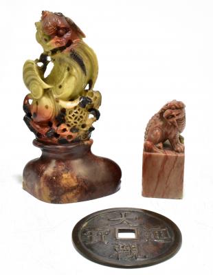 Three Day Auction of Boutique, Silver, Jewellery & Watches with Furniture & Interiors(#204) 14/07/2021 10:00 AM GMT+1 CLOSED Auction Information Advanced Search ▼ Items per page 122448 Advanced Search Sort by DefaultTime LeftLot#Lot NameNewestHighest PriceLowest PriceBidsViews Filter By Categories Silver Asian Art: Oriental & Eastern Works of Art Jewellery: Costume Jewellery Clocks: Carriage Clocks Furniture: Oak & Vernacular Doulton Sporting Boutique - Accessories Glass Barometers Pictures: Traditional Watercolours Decorative Arts Musical Instruments & Mechanical Music Jewellery Militaria: Medals, Badges & Buttons Furniture: Arts and Crafts & 20th Century Design Pictures: Northern & 20th Century Oils Taxidermy Boutique - Handbags Metalware Clocks: Longcase Clocks Pictures: Traditional Oils Ceramics Ephemera Boutique - Jewellery Militaria: Edged Weapons Furniture: Mirrors Pictures: Northern & 20th Century Watercolours Textiles Coins Scientific Instruments Clocks: Wall Clocks Watches: Pocket Watches Furniture: Reproduction Ceramic Figures Books Boutique - Shoes/Boots Militaria Garden and Architectural Pictures: Northern & 20th Century Prints Bronze and Other Sculptures Plated Items Asian Art: Chinese Works of Art Clocks: Mantel clocks Watches: Wristwatches Furniture: Traditional Beswick Toys & Games: Toys Boutique - Clothing Lighting Carpets & Rugs Pictures: Prints, Etchings, Engravings & Maps Collectors' Items Category match ANY of the aboveALL of the above Featured Exclude closed lots Price Auctioneer All auctioneersLiverpooltest Lot Number Results: Viewing items 1921-1968 of 2356. View Lot 2196 An 18th century Chinese Famille Rose mug decorated with stylised figures inside panels of floral sprays and landscape decoration, height 12cm. Estimate£50 - £80Winning Bid£20StatusCLOSED Condition ReportRestoration to the joining points on the lower parts of the handle, wear to the decoration in parts. View details Estimate£50 - £80Winning Bid£20StatusCLOSED Lot 2197 A pair of late 19th/early 20th century Chinese porcelain Famille Rose vases with twin shi-shi dog mask handles, both decorated with figures within panels bordered by floral sprays, unmarked, height 43.5cm (2). Estimate£50 - £100Winning Bid£600StatusCLOSED Condition ReportBoth vases have been heavily enamelled to the grounds of the panels, a couple of the faces have been either unfinished and enamelled over and simply finished and still enamelled over. Similar details on people's dress, robes and accessories. Cannot say whether this has been done at point of manufacture or after possibly to cover flaws but it has not been done with any particular refinement or finesse. Fritting and rubbing to the decoration throughout, build up of dust and dirt. One has a manufacturing flaw to the foot rim, there is kiln dirt, imperfections and inclusions throughout. View details Estimate£50 - £100Winning Bid£600StatusCLOSED Lot 2198 A Cantonese Famille Rose plate, diameter 24cm, with three Korean celadon ground plates, diameter 18cm, and two Japanese Imari dishes (6). Estimate£30 - £40Winning Bid£20StatusCLOSED Condition ReportThe Canton plate with two small hairline cracks to the underside of the rim. The three Korean plates with small nicks and chips at the edges. One of the Imari plates with a repaired break at the rim and both with hairline cracks in the glaze. View details Estimate£30 - £40Winning Bid£20StatusCLOSED Lot 2199 A pair of Japanese kakiemon porcelain bowls with crimped rims, the interior with underglaze blue and overglaze enamelled decoration of flowering branches and rocks with floral roundel to centre, the exterior with doucai enamel roundels, both with apocryphal six character Wan Li marks to bases, diameter 14cm (one af) (2). Estimate£100 - £200StatusUnsold Condition ReportOne with two chips to rim and hairline cracks, the other with chip to foot rim, both with inclusions, some fritting, rubbing and losses to enamelled decoration. View details Estimate£100 - £200StatusUnsold Lot 2200 An 18th century Chinese Imari mug with underglaze blue, overglaze red and gilt, floral decoration featuring plum blossom, chrysanthemums and peonies, unmarked, height 22cm (af). Estimate£30 - £50Winning Bid£55StatusCLOSED Condition ReportCracked through the upper section, further cracks through the handle upper and lower sections with staple repairs. Further inclusions, fritting, rubbing etc. View details Estimate£30 - £50Winning Bid£55StatusCLOSED Lot 2201 A 20th century Chinese ceramic twin handled crackle glazed vase decorated in enamels and relief detail depicting figures on horseback and stylised animals, four character mark to base, height 34cm (drilled), and a reproduction ornate gilt metal table lamp in the form of a ewer, raised on black marble plinth base, height excluding fitting 67cm (2). Estimate£30 - £50Winning Bid£35StatusCLOSED Condition ReportThe Chinese vase has been drilled. There are glue marks and remains to the top. There are chips and minor losses to the handles. View details Estimate£30 - £50Winning Bid£35StatusCLOSED Lot 2202 A late 19th century Chinese mother of pearl silver mounted folding table screen, the interior decorated with two dragons and with faux bamboo upright supporting the silver hinges, height 19cm (af). Estimate£100 - £150Winning Bid£55StatusCLOSED Condition ReportThe bamboo upright has broken away from the hinge and has been very crudely reattached. There are losses to the left hand dragon, noticeably around the claws. A few tiny surface marks throughout. The silver is rather heavily tarnished, otherwise ok. View details Estimate£100 - £150Winning Bid£55StatusCLOSED Lot 2203 A Chinese bronze bi-disc, with four character marks to front and two symbols to the reverse, size approx 11.5cm, together with a Chinese soapstone carving of a temple dog, height approx 22cm and a soapstone carving of a shi-shi on rectangular base (3). Estimate£30 - £40Winning Bid£40StatusCLO